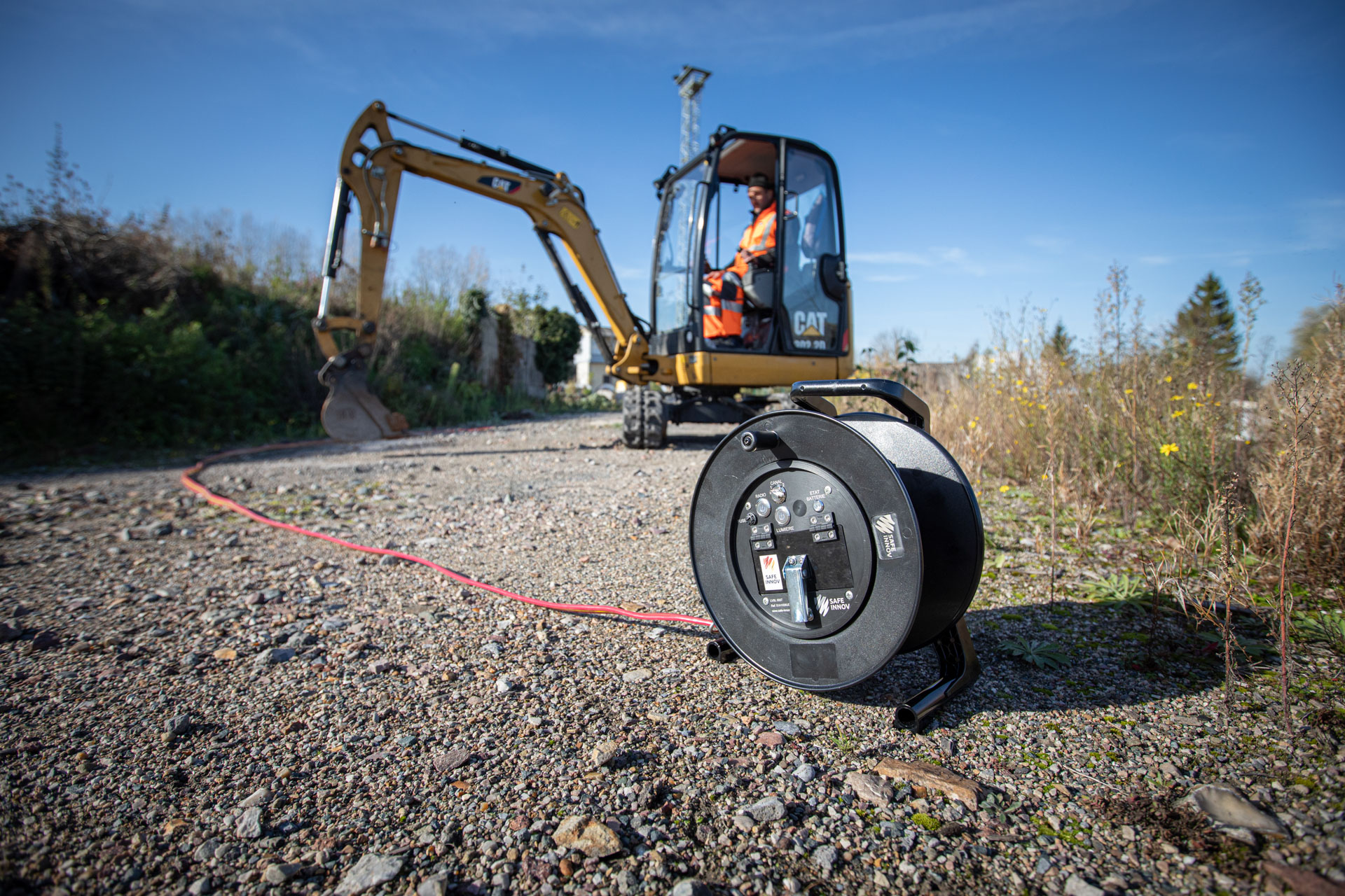 The barrier cable itself is installed with a reel. Available in several cable lengths according to the configuration of the teams and typical sites, the reels systematically integrate a battery allowing to work in complete autonomy on the field.
